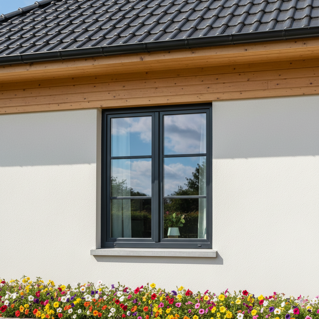 Materiale: Profil din PVC/Aluminiu Gri Antracit (sau negru mat). Geam termoizolant cu reflexie înaltă.